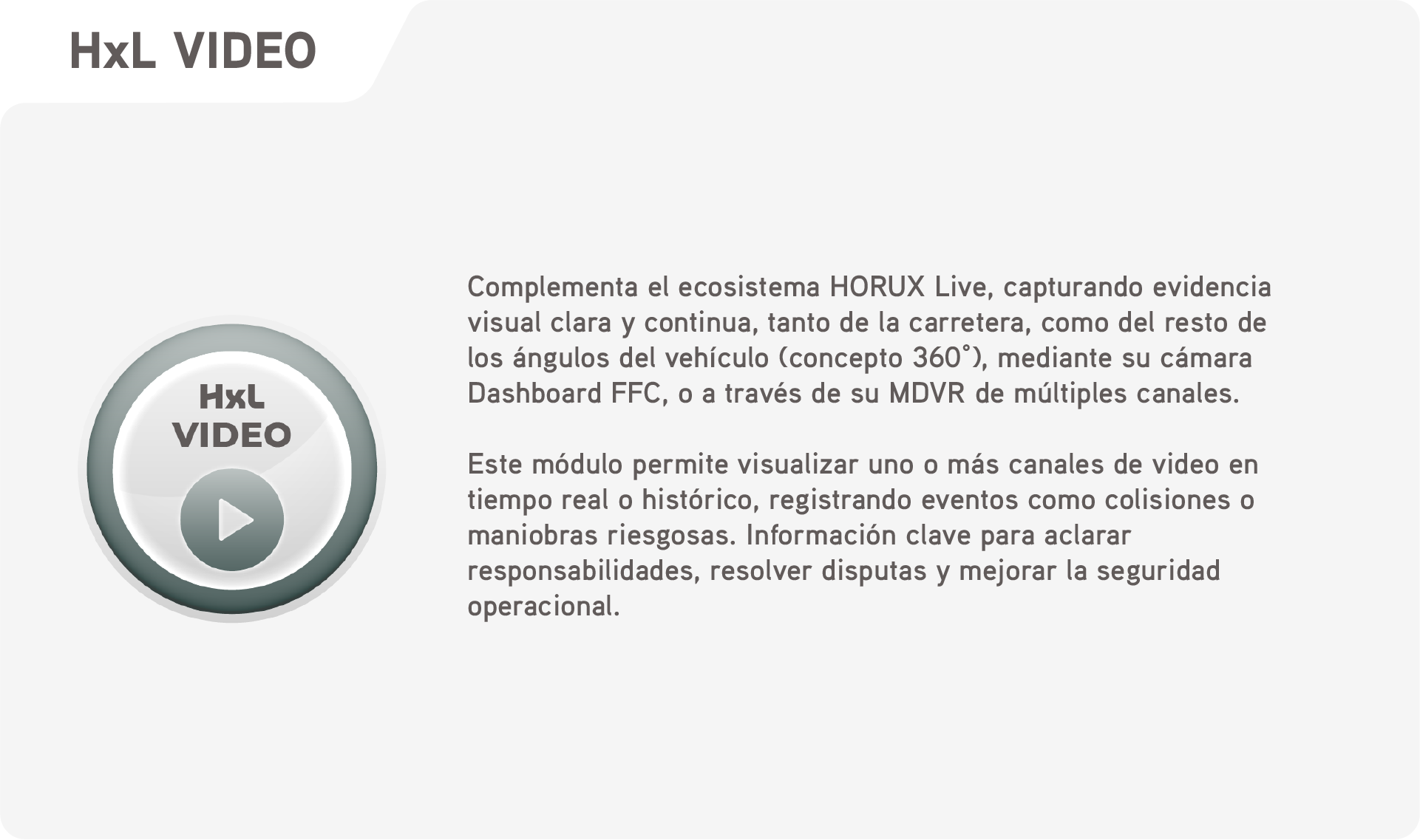 HORUX Live es una plataforma de desarrollo propio que integra tecnologías avanzadas en un sistema único para ayudar a una conducción más segura y productiva, integrando diversas tecnologías que permiten gestionar de manera eficiente los riesgos asociados a cada conductor, flota y transportista.